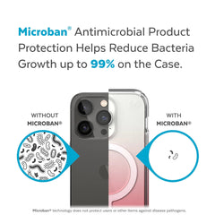 PRESIDIO® PERFECT-CLEAR MAGSAFE® case is the clearest, super-protective, pocket-friendly case we’ve ever designed. Our innovative materials allow us to create a case that stays perfectly clear longer. Highly protective, yet slim, this case is pocket-friendly, and is built with precision magnets that work reliably with all Apple MagSafe® chargers and accessories. Clearly stylish, but also built tough for life’s rough moments with our clear impact technology. Our proprietary, clear phone-cushioning rubber compresses on impact to protect your phone and resist damage. Naturally our Presidio Perfect-Clear case is real-world tested to withstand drops up to 13 feet. So, no matter what happens, you can be confident you’re protected. It also has Microban® antimicrobial product protection that delivers up to a 99% reduction in stain and odor-causing bacteria on the case, creating a cleaner surface. Plus, it features our raised bezel. This added edge helps protect your screen from scratches, chips, or the dreaded spiderweb shatter if your phone falls and lands face-down.