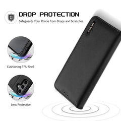 DUX DUCIS Real Leather Flip RFID Wallet Case for Samsung Galaxy S25+ (Plus) - Black